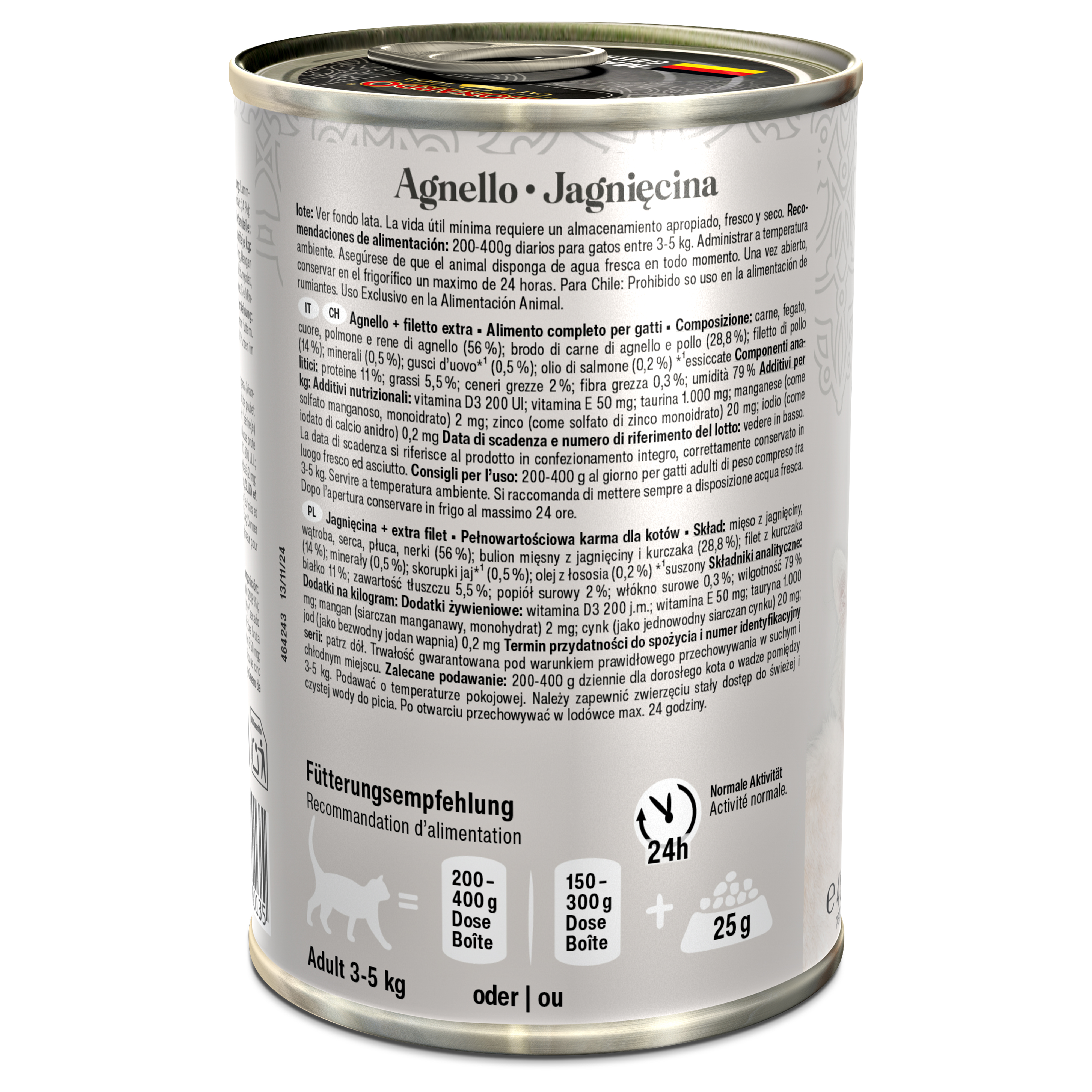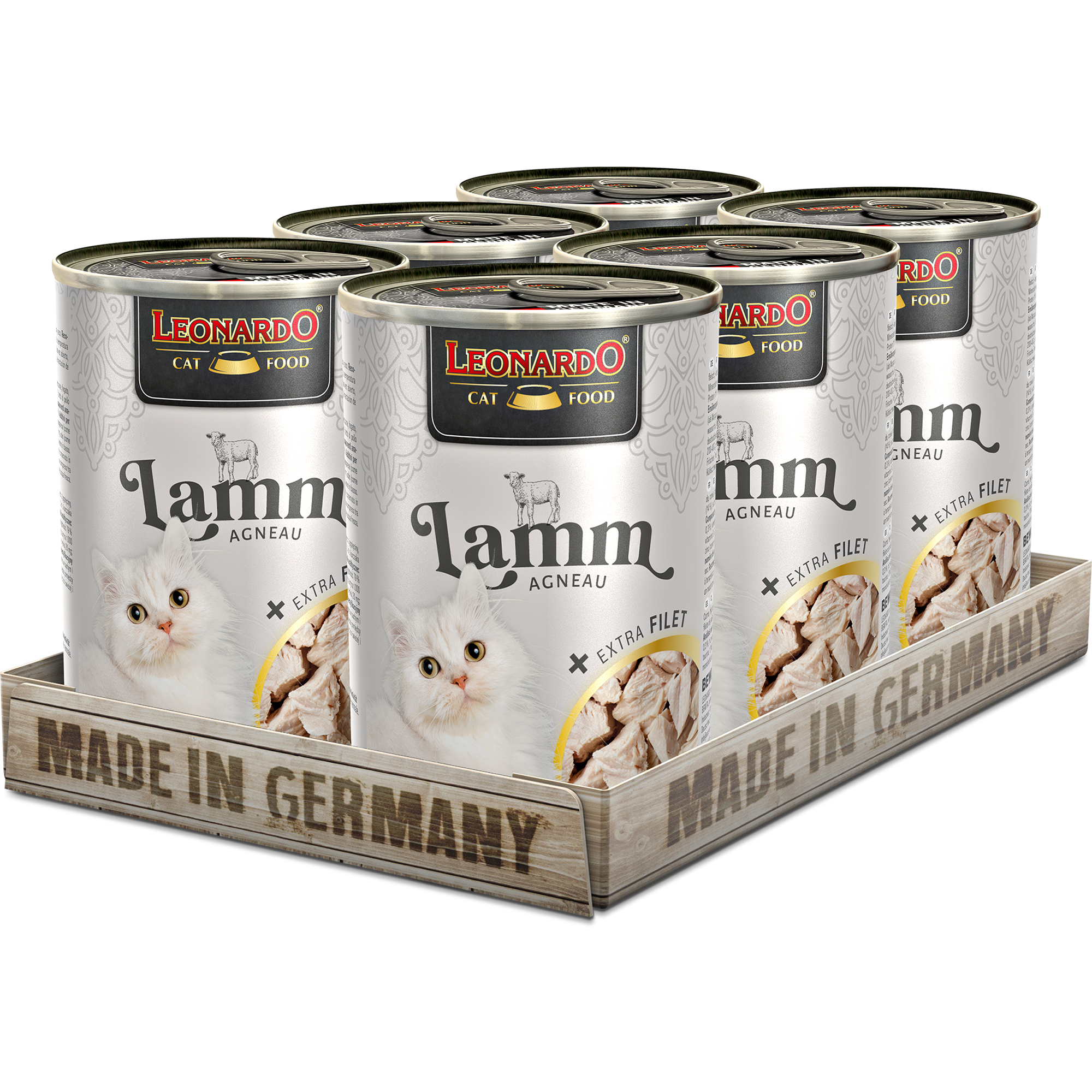 Velsmagende lam raffineret med ekstra lækre filetstykker. Skånsomt tilberedt i egen saft, så der udvikles en uimodståelig kødnydelse og en helt særlig glæde ved at tygge. Opskriften får et ekstra afsluttende raffinement med den fineste lakseolie, som også tilfører flerumættede fedtsyrer, der giver silkeblød pels. Naturligvis uden sukker eller kunstige farve- og smagsstoffer samt konserveringsmidler.